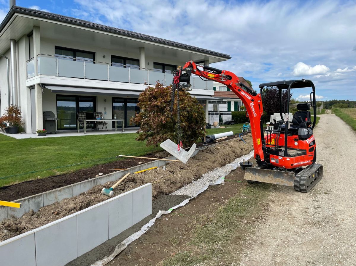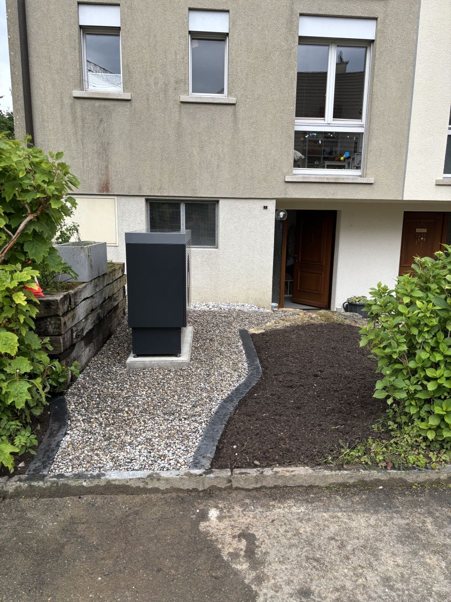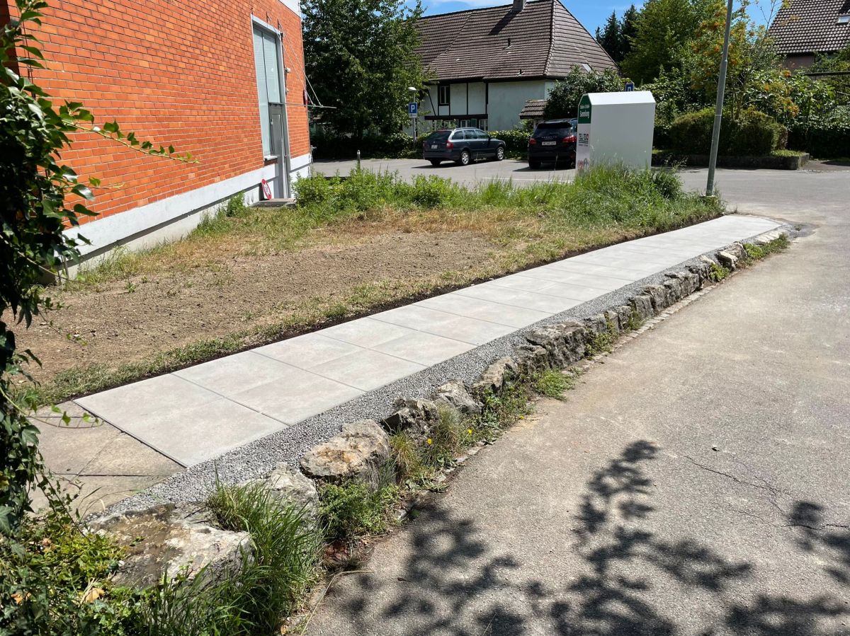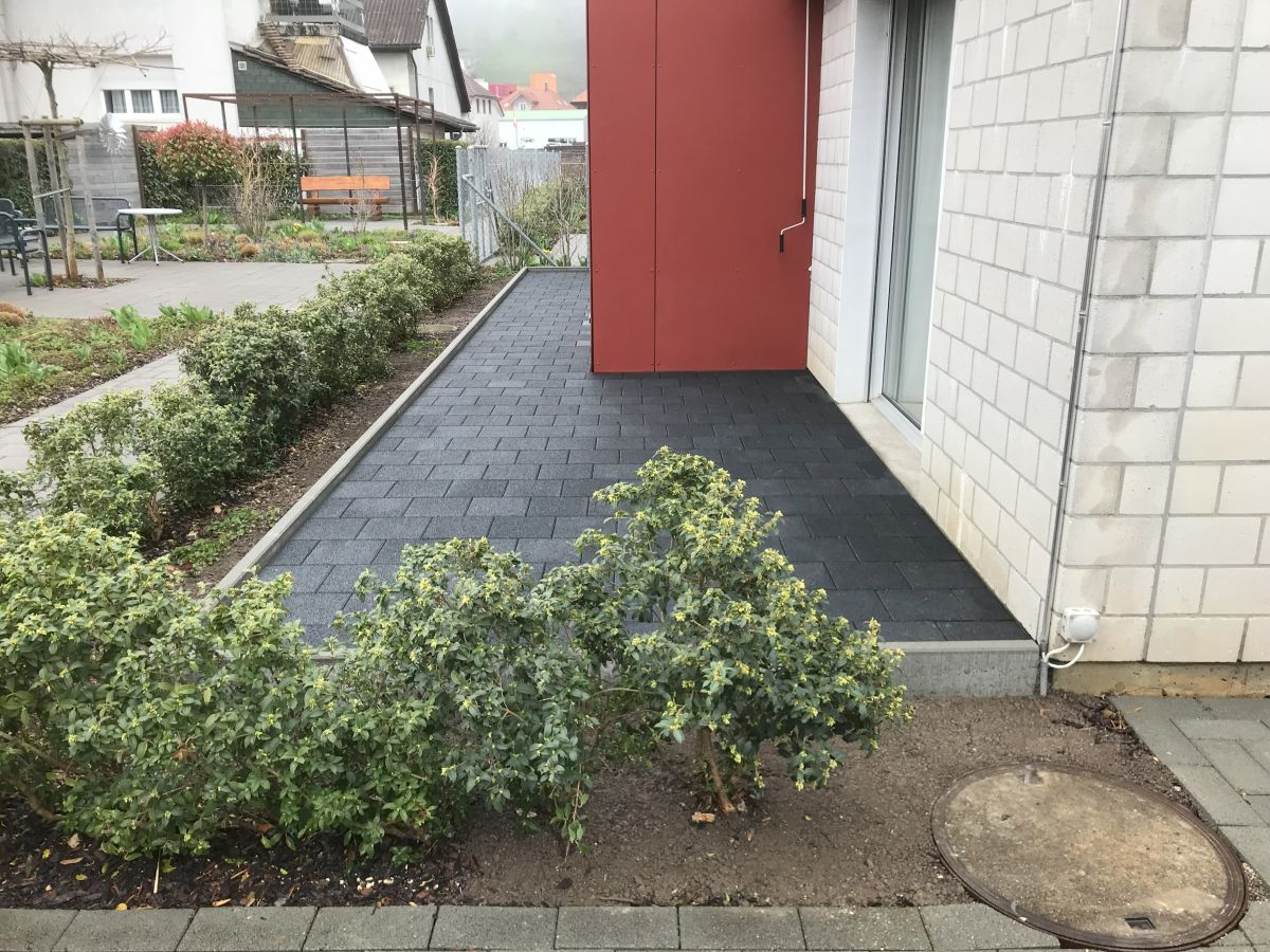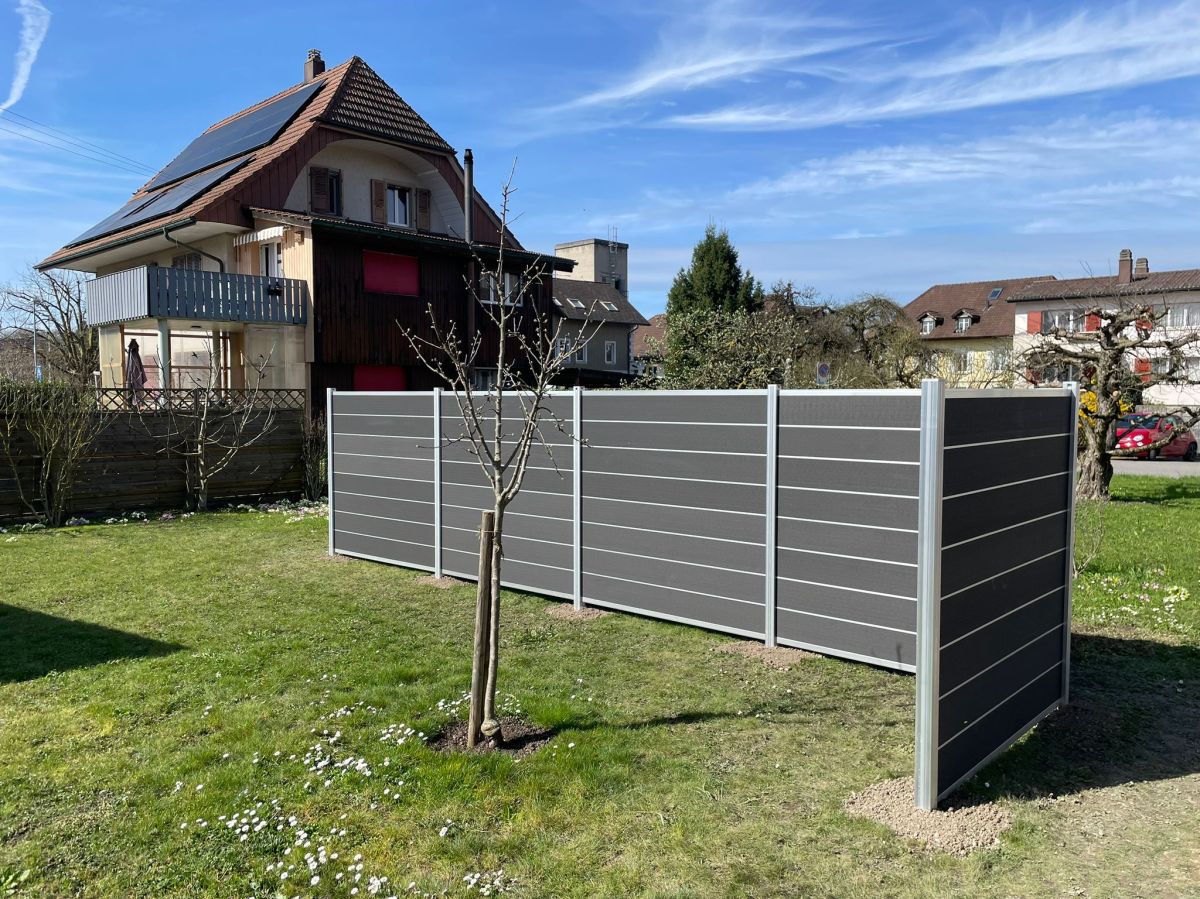 Sichtschutzwand WPC mit Steinrabatte und Rasenkantenabschluss