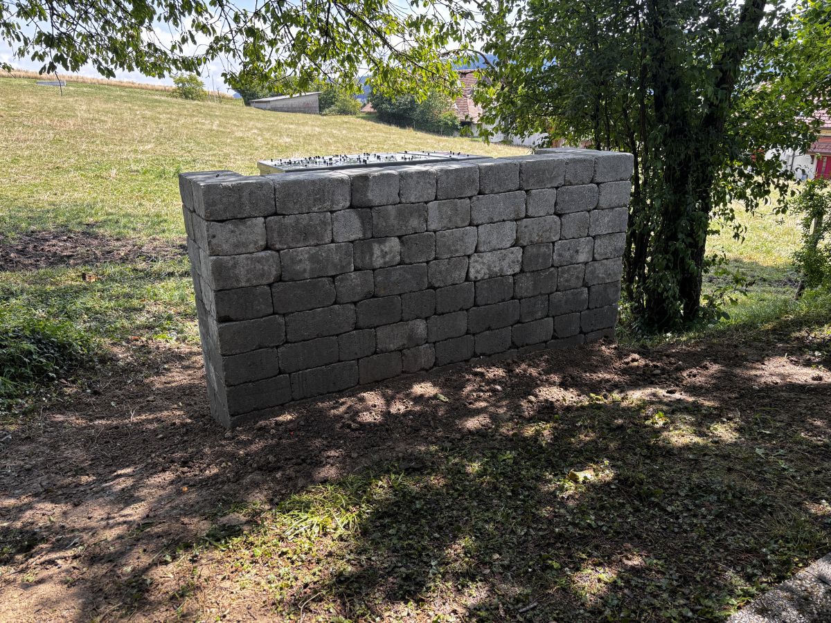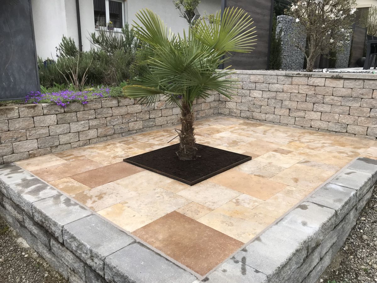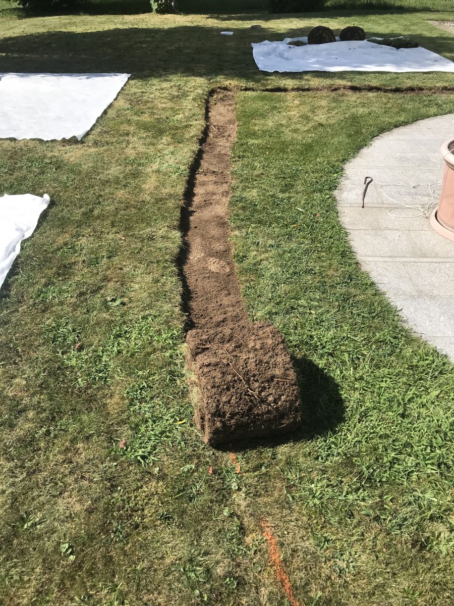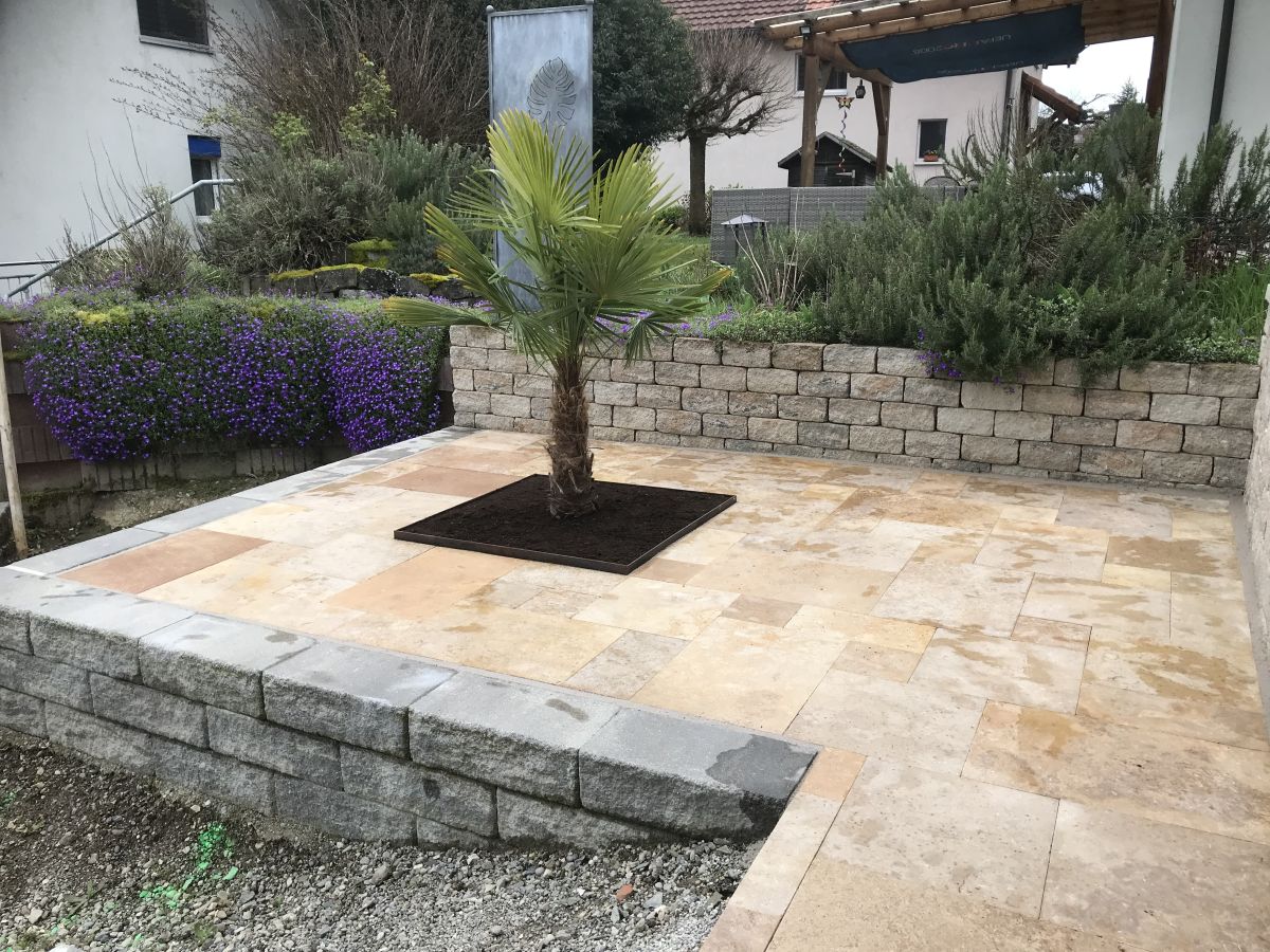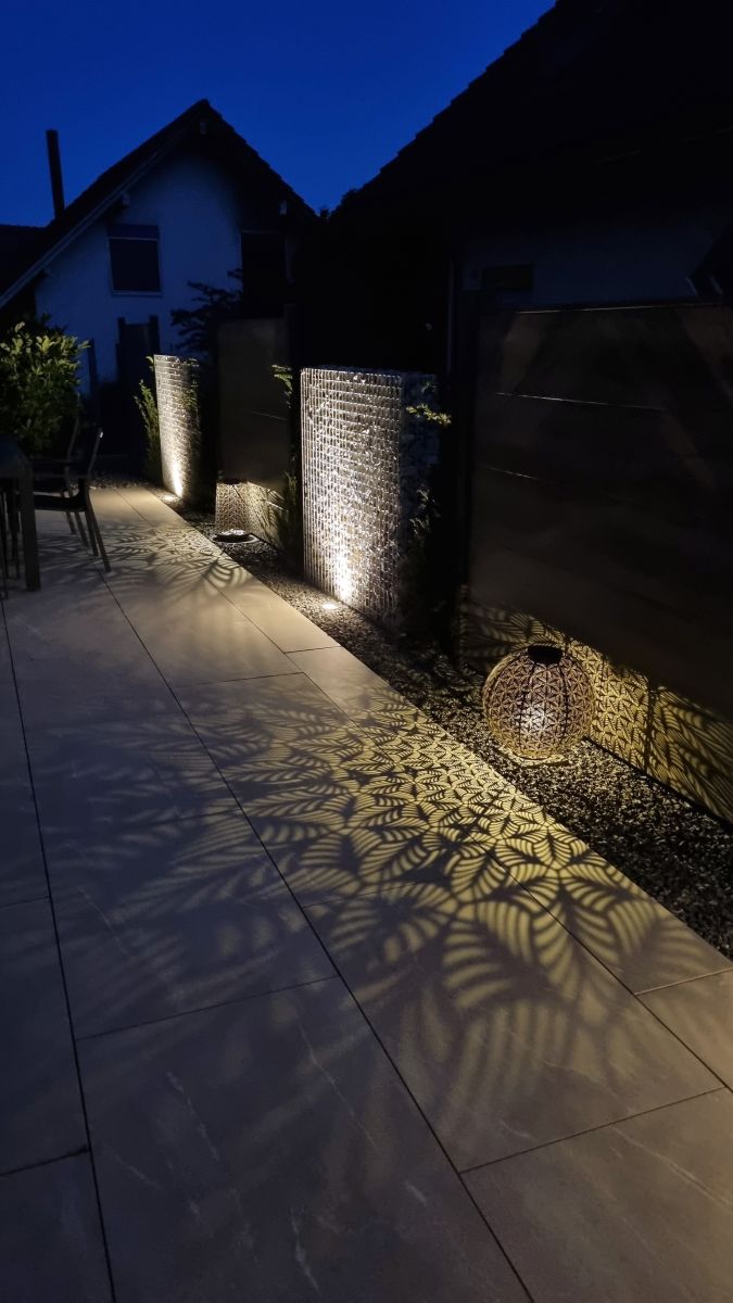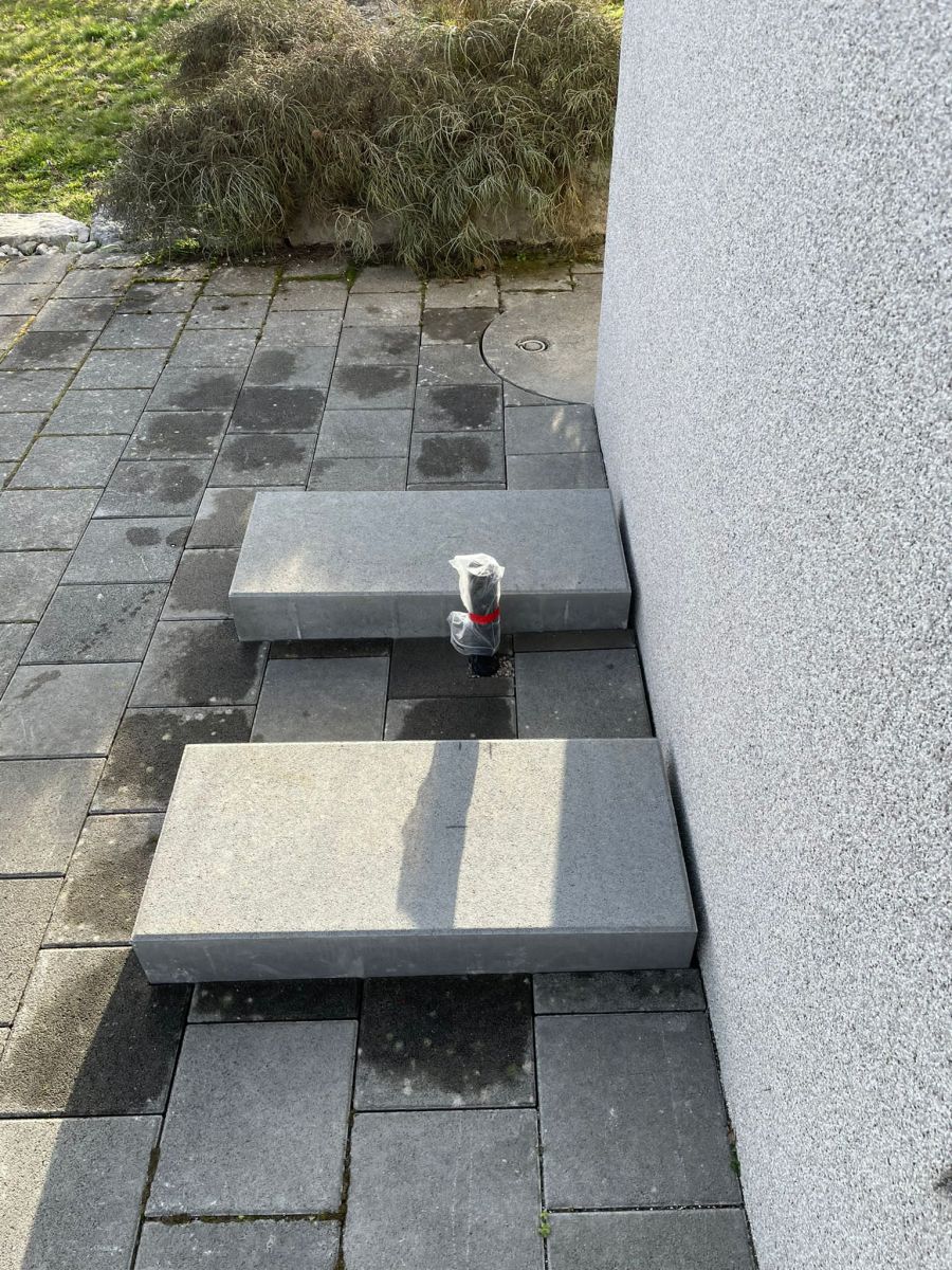 Sichtschutzwand WPC mit Steinrabatte und Rasenkantenabschluss