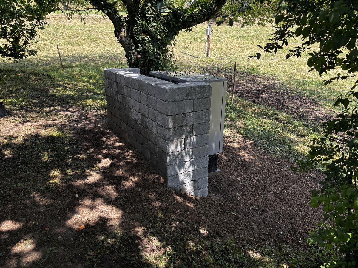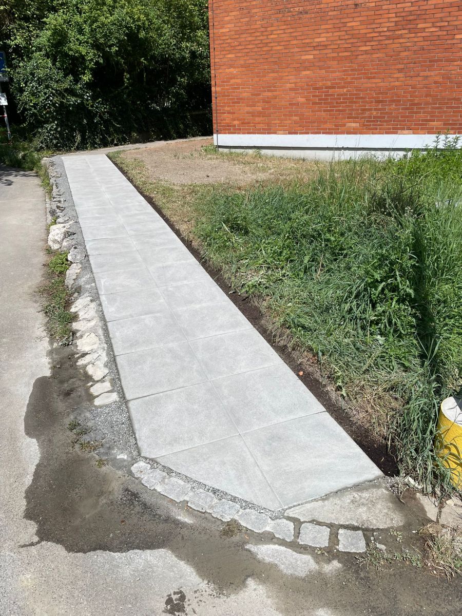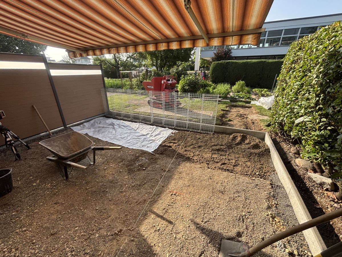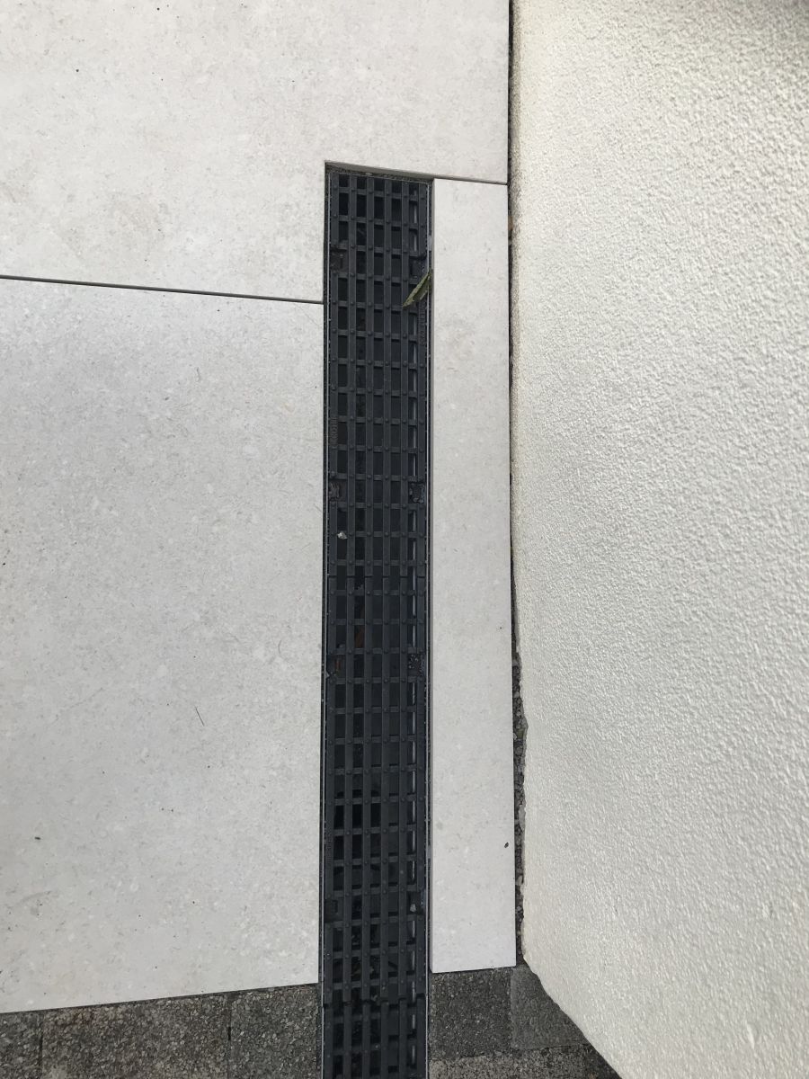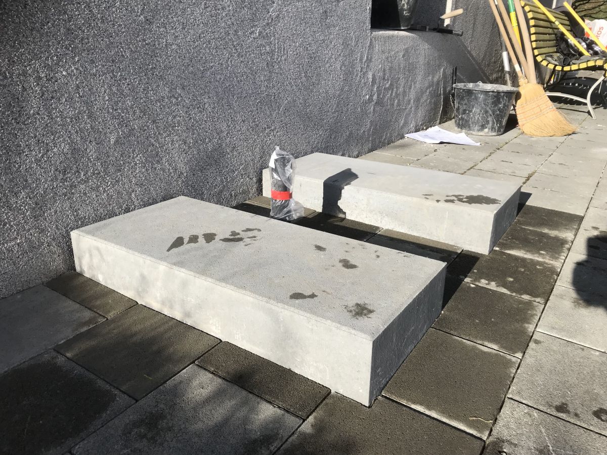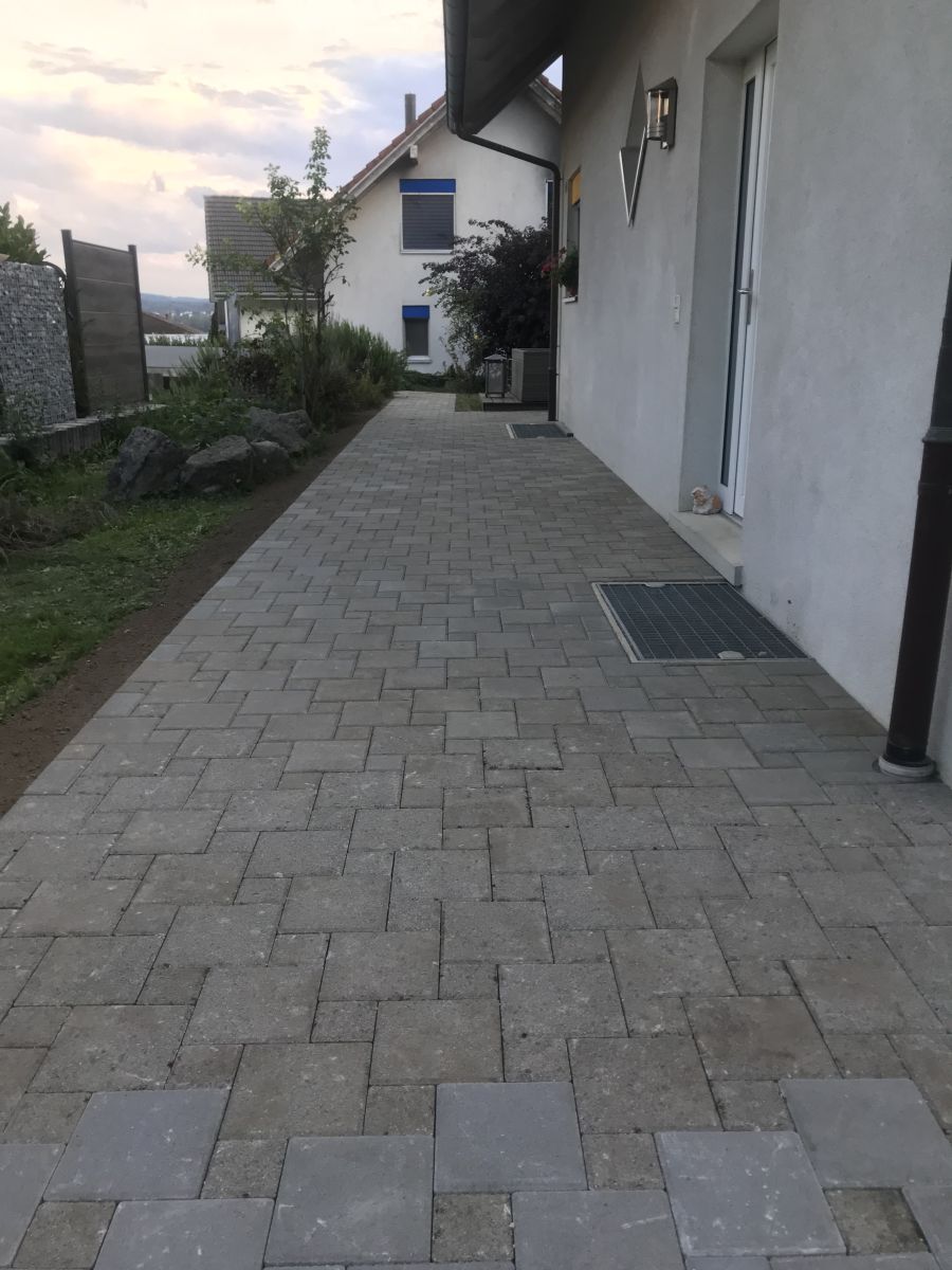 Sichtschutzwand WPC mit Steinrabatte und Rasenkantenabschluss