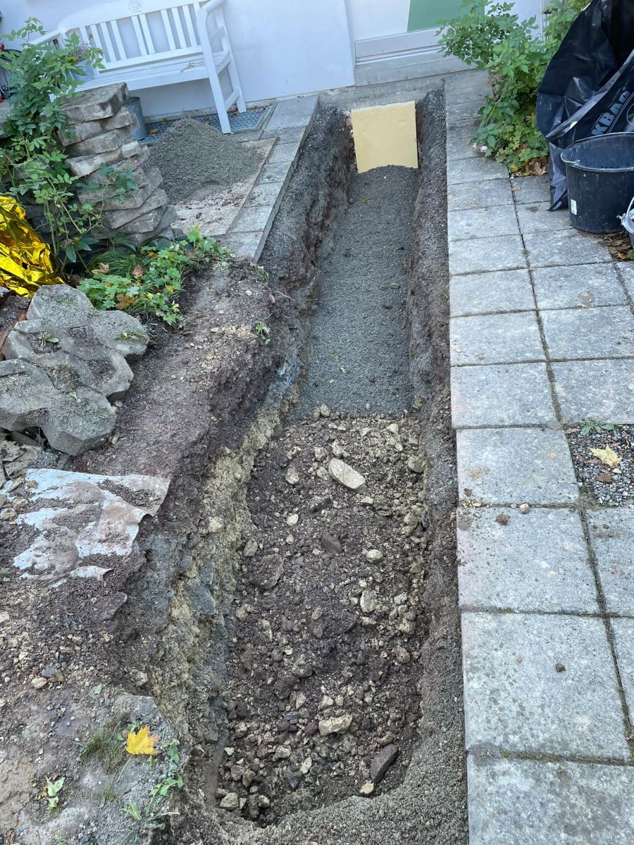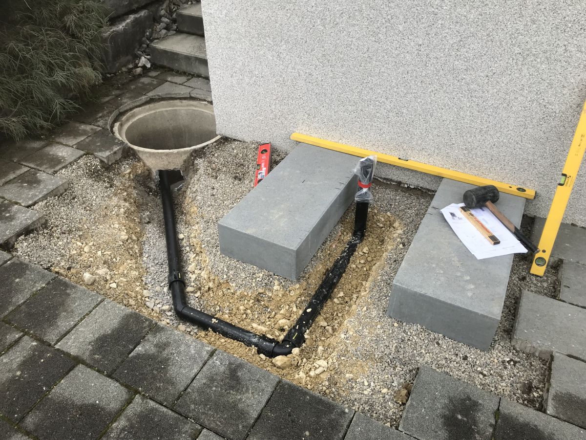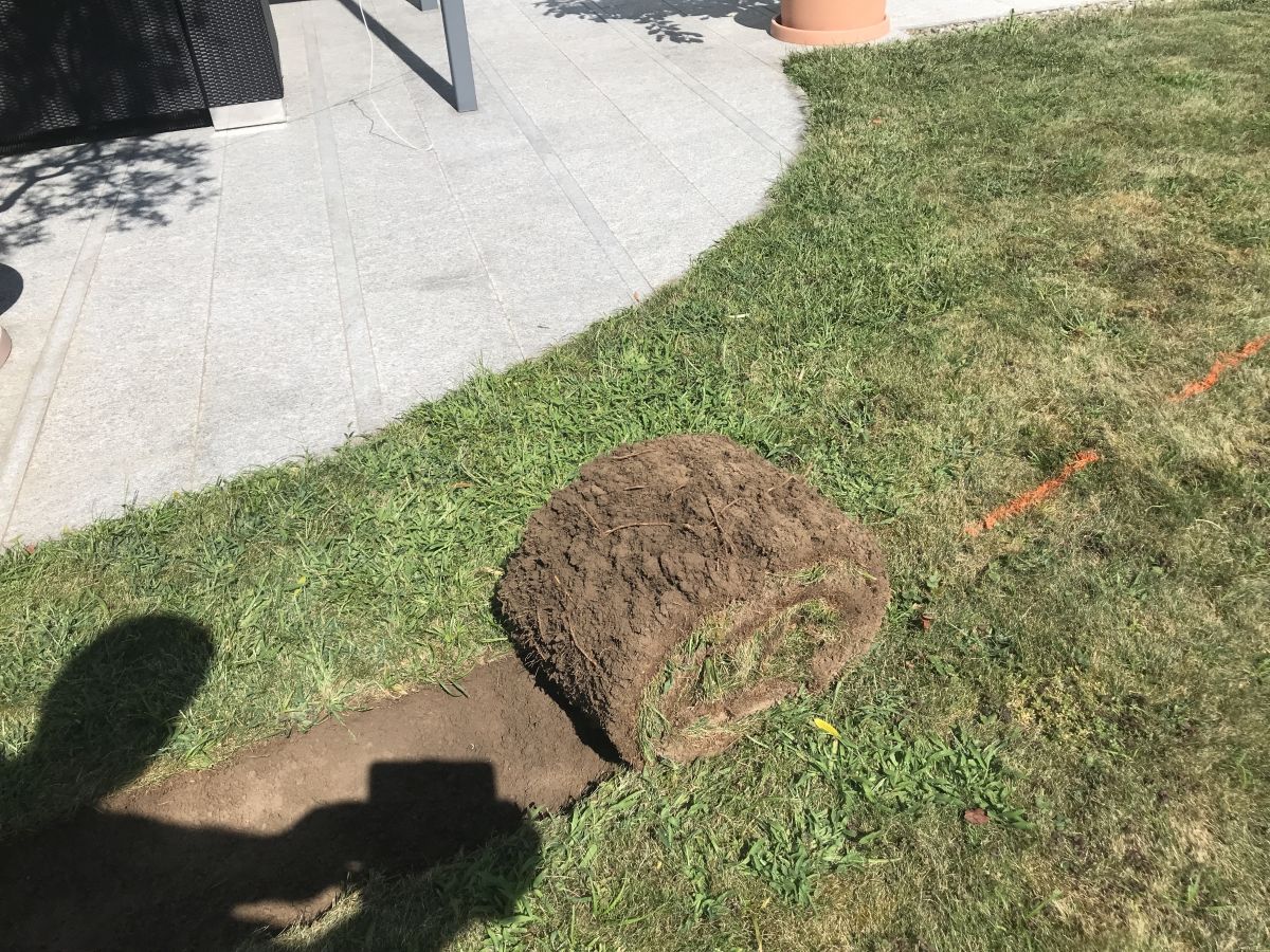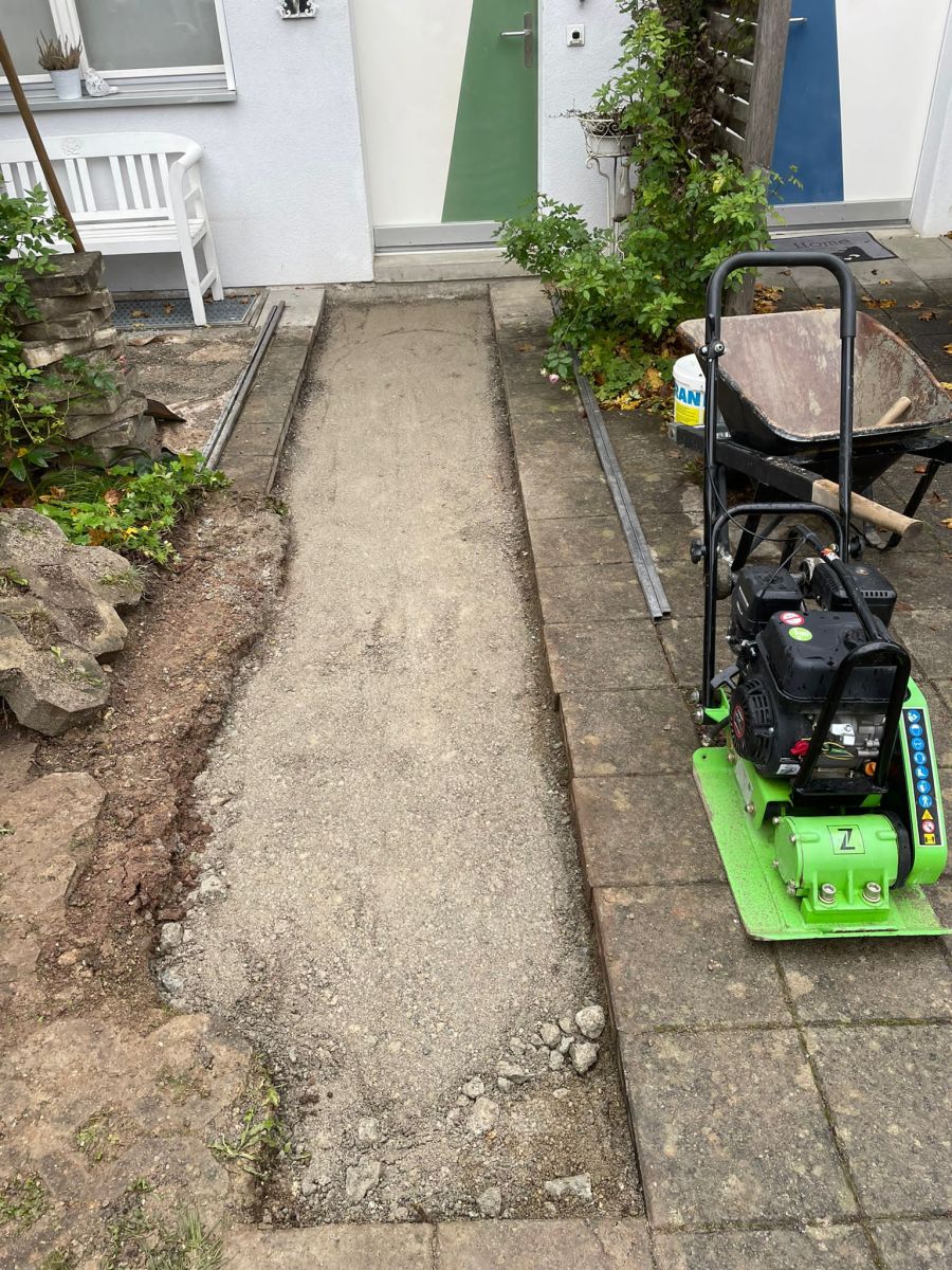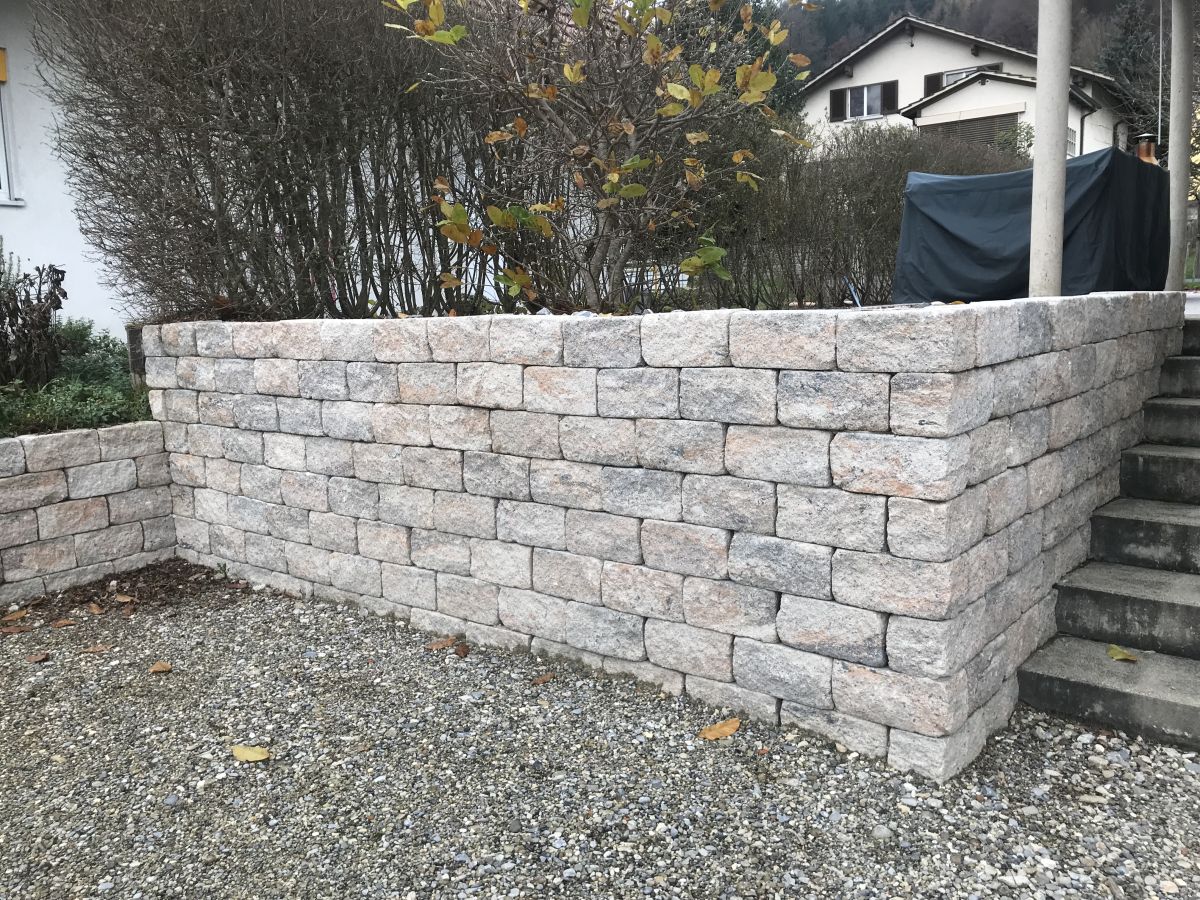 Sichtschutzwand WPC mit Steinrabatte und Rasenkantenabschluss