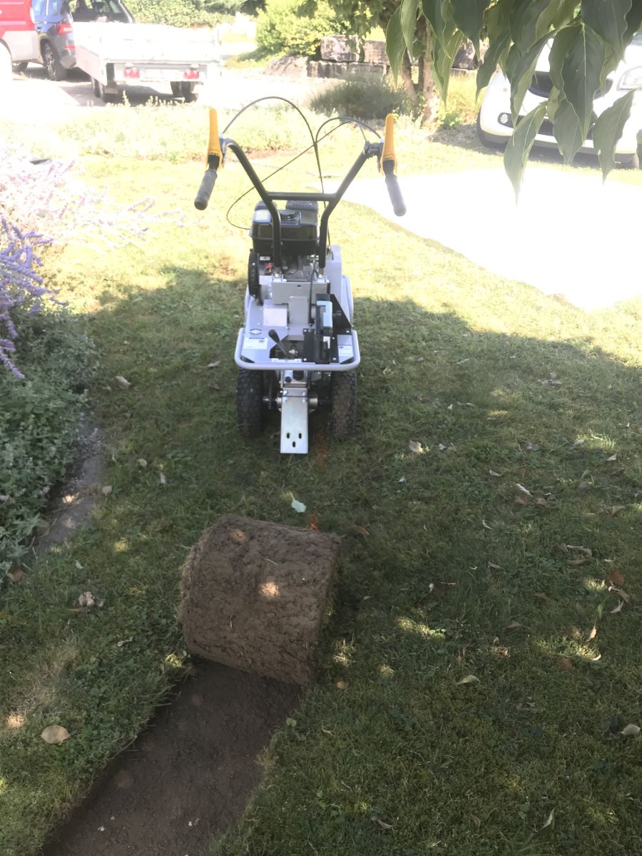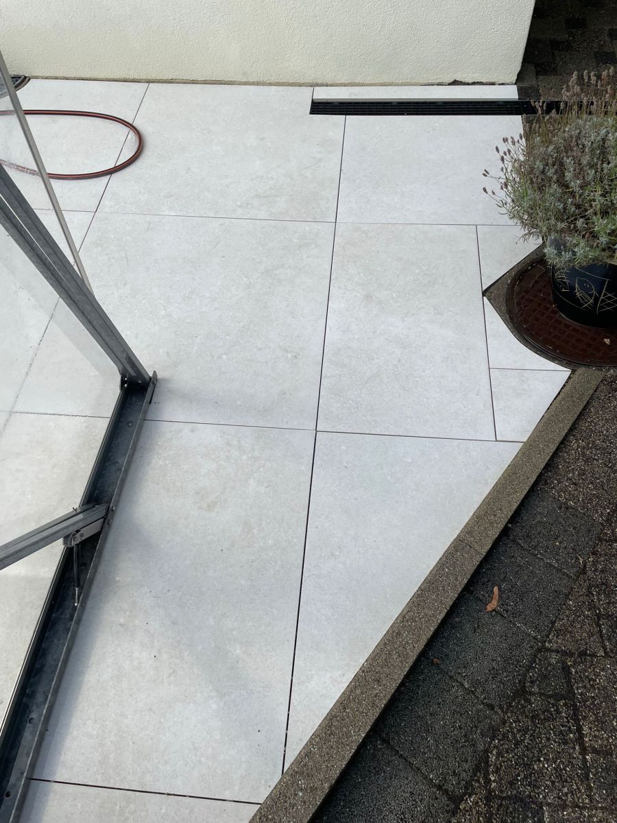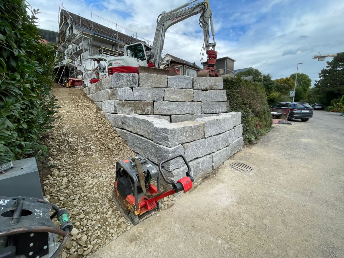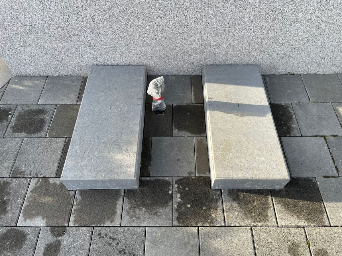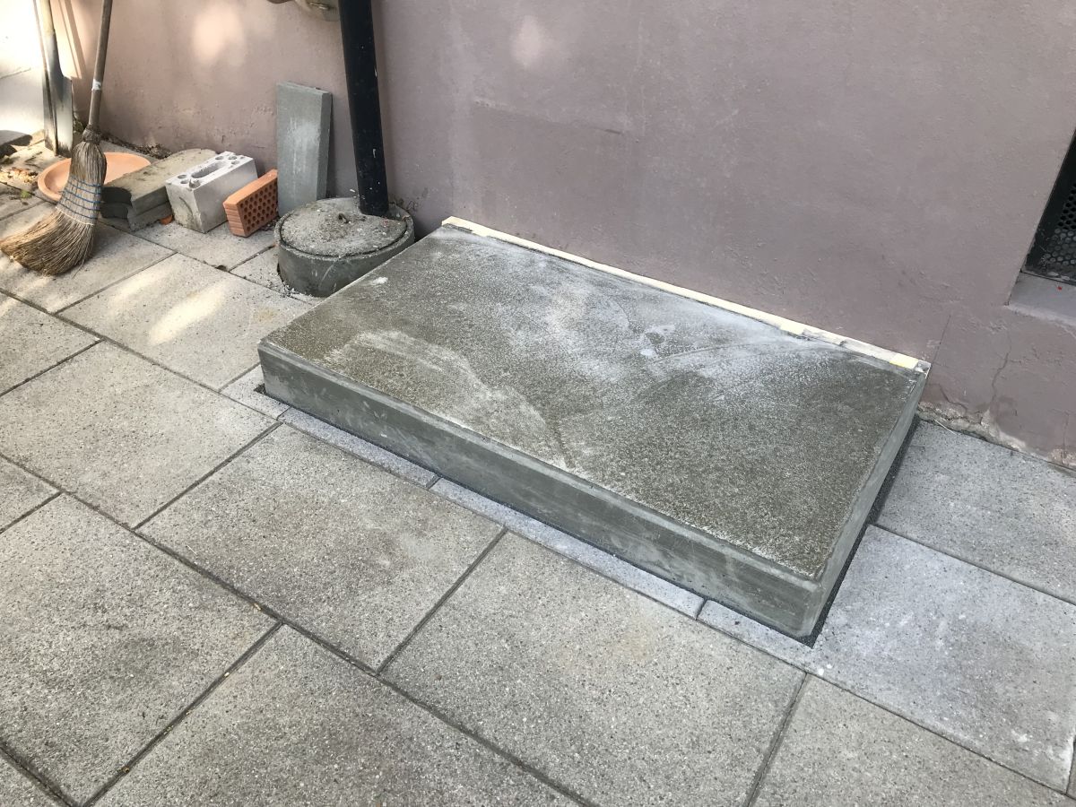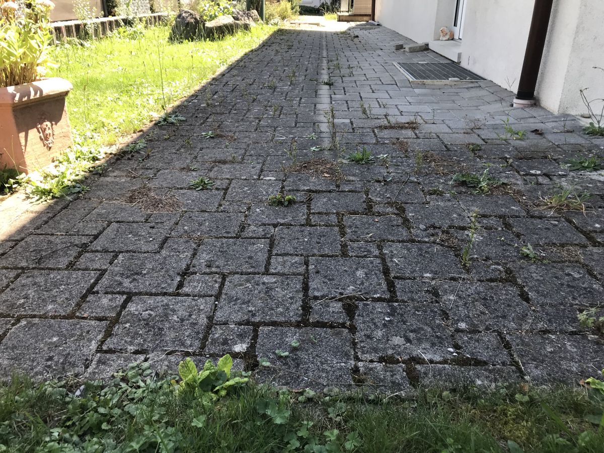 Sichtschutzwand WPC mit Steinrabatte und Rasenkantenabschluss