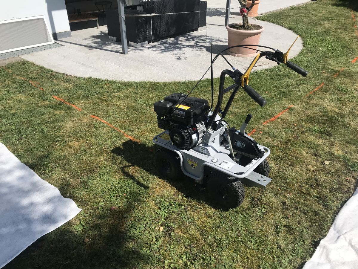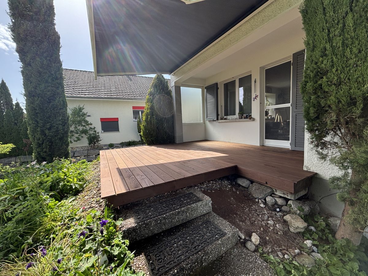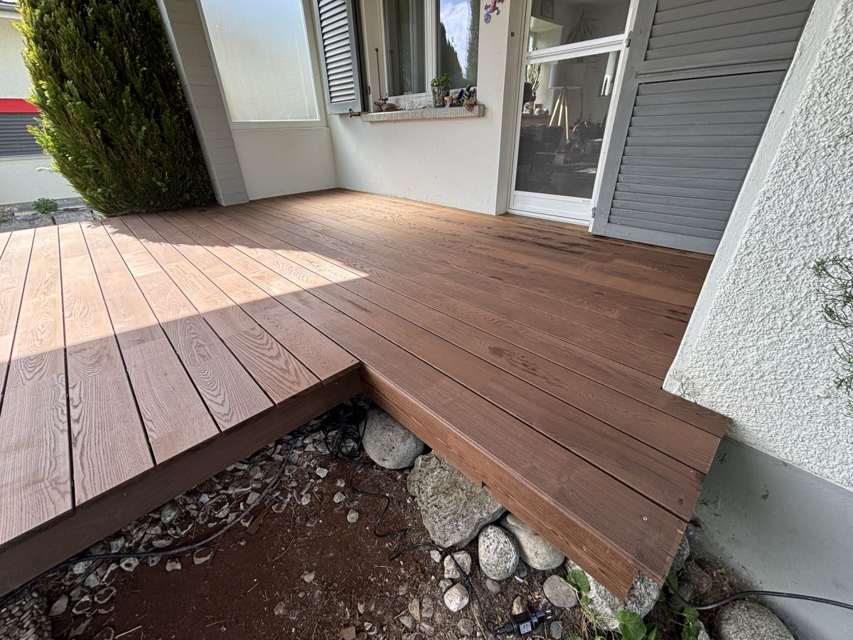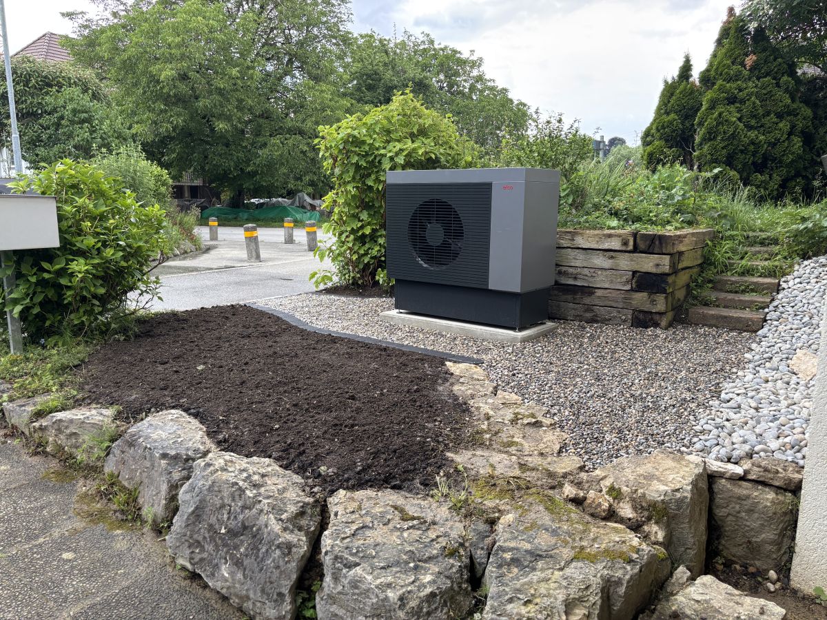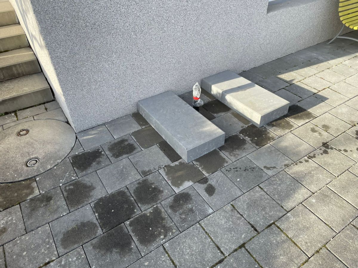 Sichtschutzwand WPC mit Steinrabatte und Rasenkantenabschluss