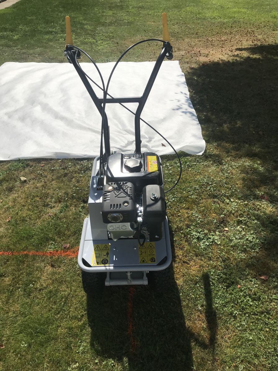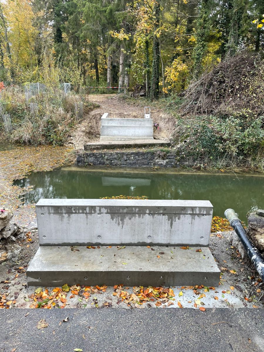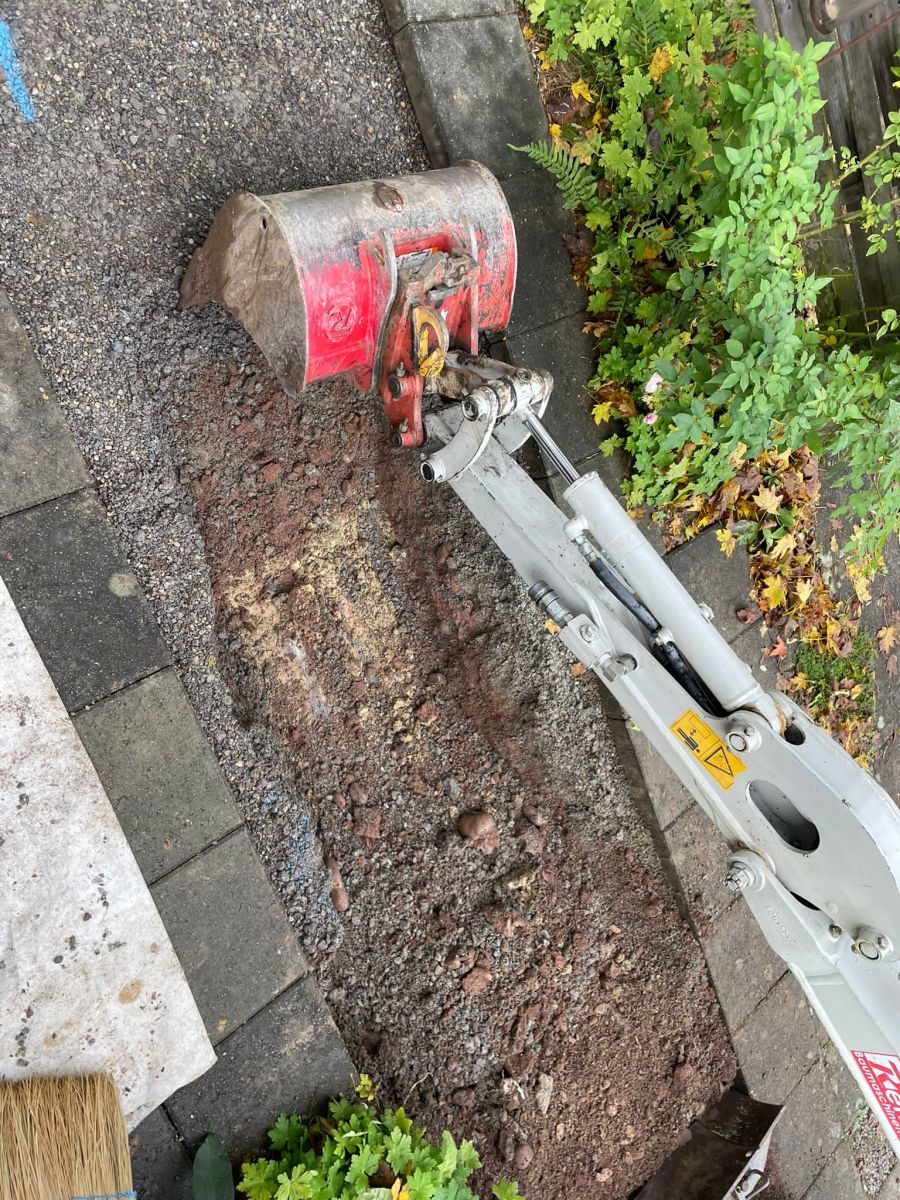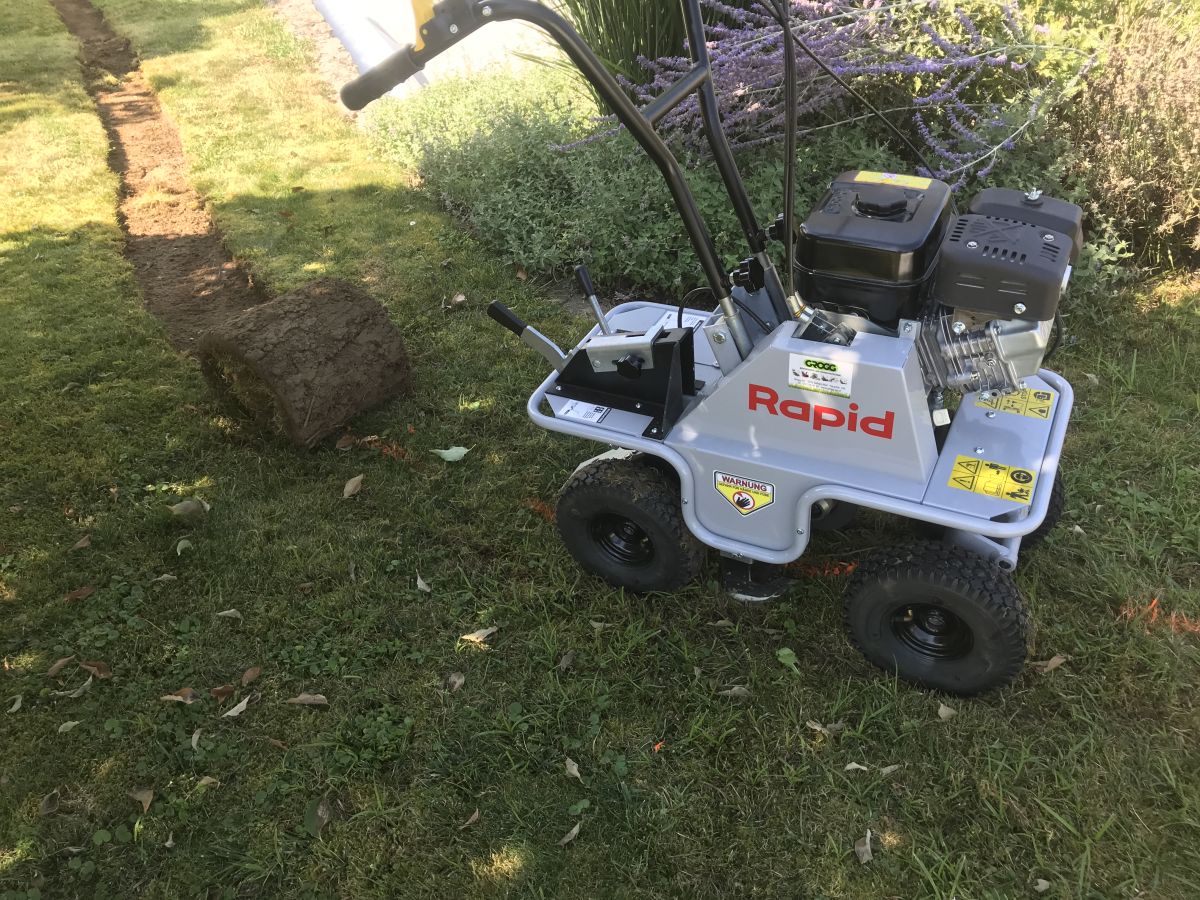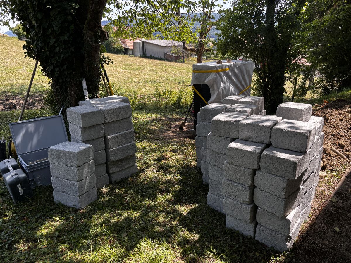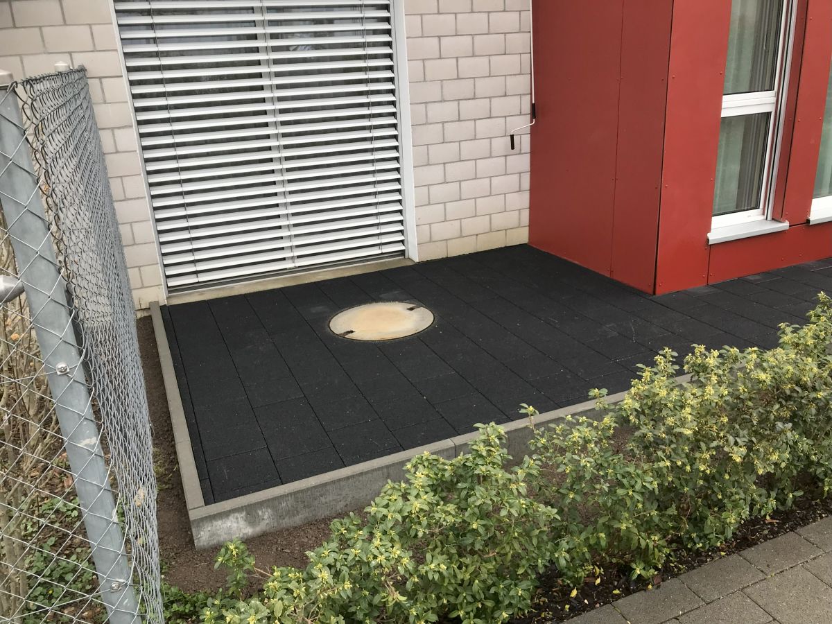 Sichtschutzwand WPC mit Steinrabatte und Rasenkantenabschluss