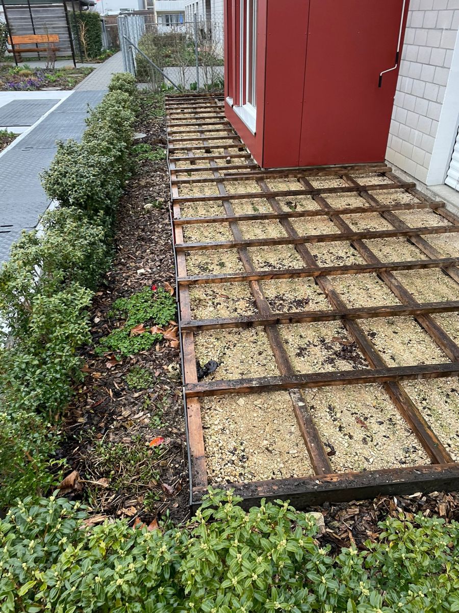 Ersatz Lorbeerhecke durch Sichtschutzwand